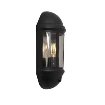 Beschreibung Ansell LED-Wandleuchte Latina Halblaterne Schwarz - Geeignet für E27 bis zu 42W | IP65 - Bewegungs und Dämmerungssensor