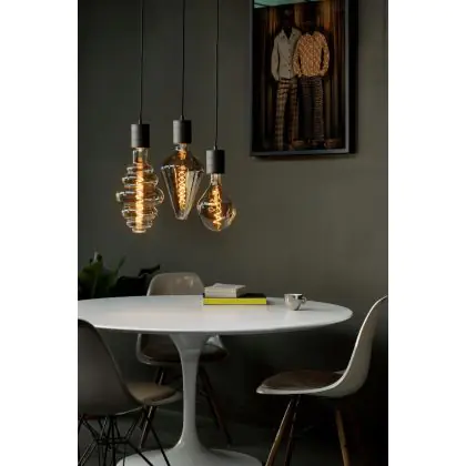 Beschreibung Calex Retro Pendelleuchte Cordset Rund Metall Schwarz |incl. Kabel 2 Meter - Geeignet für 3xE27