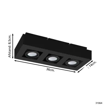 Beschreibung Eglo Decke Spot Mendoza Stahl Schwarz 14.1W 1035lm - 830 Warmweiß | Dimmbar - Geeignet für GU10