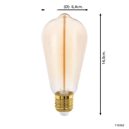 Die Eglo LED Edison E27 Fadenlampe Messing 2W 100lm - 818 Extra Warmweiß | Dimmbar - Ersatz Für 15W ist eine effiziente E27 LED-Lampe mit Retrodesign und der perfekte Ersatz für Ihre konventionellen 15W Lampen mit E27. Zudem strahlt sie Licht in der Farbtemperatur 1800K - Extra Warmweiß aus und punktet durch eine lange Lebensdauer.