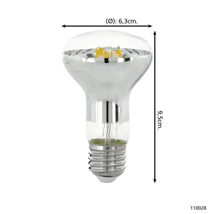 Der Eglo LED-Spot E27 R63 5.5W 470lm 120D - 827 Extra Warmweiß | Dimmbar - Ersatz Für 60W ist ein leistungsstarker LED-Strahler mit E27-Sockel. Er kommt mit einer hohen Lebensdauer von 15000 Stunden daher und spart Ihnen somit nicht nur Energie-, sondern auch Austausch- und Wartungskosten. Im Preis ist zudem eine All-In-Garantie von 2 Jahre enthalten.
