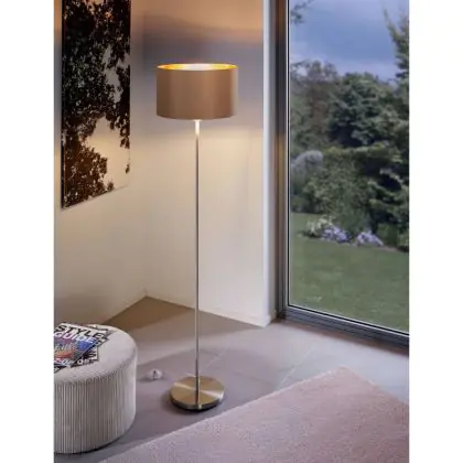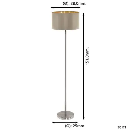 Beschreibung Eglo Stehlampe Maserlo Stahl Satin-Nickel | Geeignet für E27