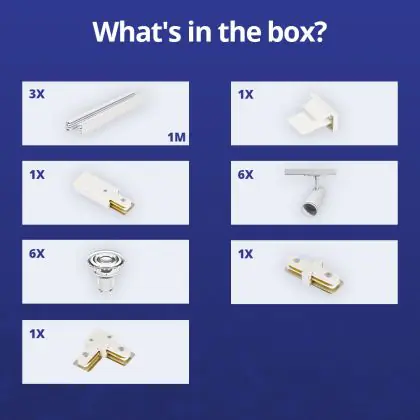 | Herstellername | Complete L shaped 1-Phase Track Set White incl. 6x Spot fixture + GU10 2700K 3W Dim – 1 x 2 meter i | |