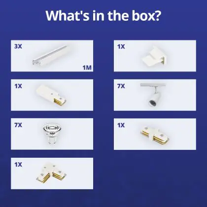 | Herstellername | Complete L shaped 1-Phase Track Set White incl. 7x Spot fixture + GU10 2700K 3W Dim – 1 x 2 meter i | |