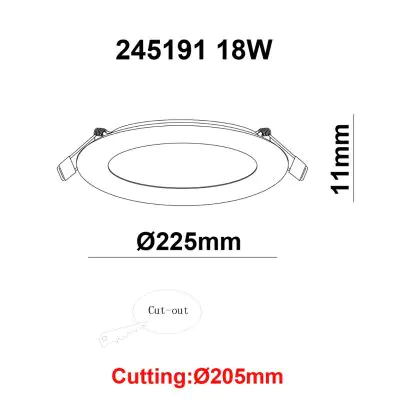 | Herstellername | White label LED Downlight Round UltraSlim 18W 1450lm 840 CutoutØ205mm FrameØ220mm | |