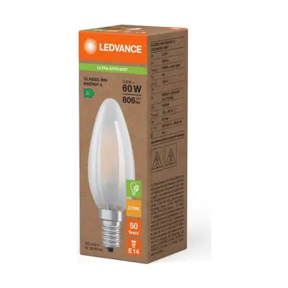 Die Ledvance LED Classic E14 Kerze Fadenlampe Matt 3.8W 806lm - 827 Extra Warmweiß | Ersatz Für 60W ist eine effiziente E14 LED-Lampe mit Retrodesign und der perfekte Ersatz für Ihre konventionellen 60W Lampen mit E14. Zudem strahlt sie Licht in der Farbtemperatur 2700K - Extra Warmweiß aus und punktet durch eine lange Lebensdauer.