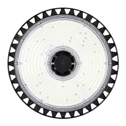 Diese LED-Hallenleuchte punktet mit einer Leuchtkraft von 27.000 Lumen (lm) und strahlt damit besonders viel Helligkeit aus. Die ebenfalls hohe Lichtausbeute von 140 lm/W zeugt von einer guten Effizienz. Wenn Sie die Stärke dieses Lichts mit dem Ihrer konventionellen Lichtlösung vergleichen möchten, empfehlen wir Ihnen einen Blick in unsere praktische Tabelle Lumen in Watt umrechnen.