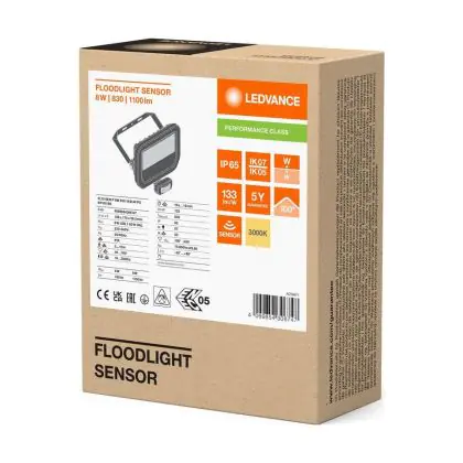 Beschreibung Ledvance Led-Scheinwerfer Aluminium Schwarz 8W 1100lm 100D - 830 Warmweiß | IP65 - Bewegungs- Und Lichtsensor - Symmetrisch