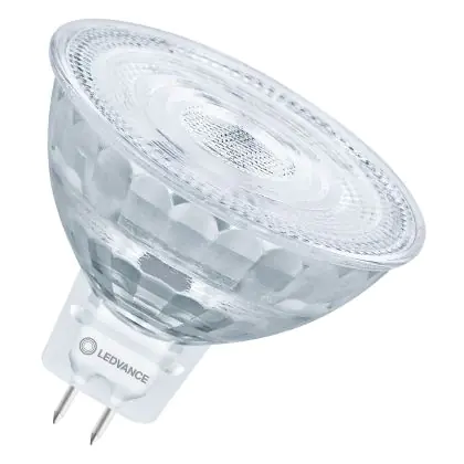Die Ledvance Superior LED Reflektor GU5.3 MR16 8W 621lm 36D - 927 Extra Warmweiß | Höchste Farbwiedergabe - Dimmbar - Ersatz Für 50W ist eine effiziente GU5.3 LED-Lampe und der perfekte Ersatz für Ihre konventionelle Halogenlampe mit 50W und einem GU5.3-Sockel, bei dem die beiden Stifte einen Abstand von 5,3 mm zueinander haben. Die Abkürzung MR16 zeigt Ihnen, dass der Reflektor einen Durchmesser von 5 cm hat. Zudem strahlt das Produkt Licht in der Farbtemperatur 2700K - Extra Warmweiß aus und punktet durch eine lange Lebensdauer.