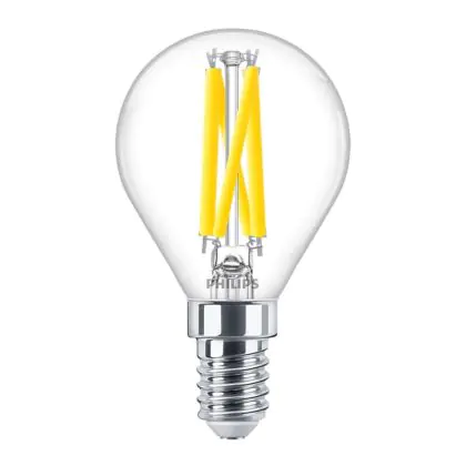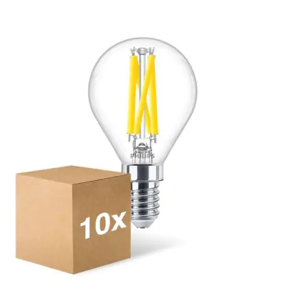 Die Mehrfachpackung 10x Philips MASTER LED E14 Kugel Fadenlampe Klar 5.9W 806lm - 922-927 Dim To Warm | Höchste Farbwiedergabe - Dimmbar - Ersatz Für 60W ist eine effiziente E14 LED-Lampe mit Retrodesign und der perfekte Ersatz für Ihre konventionellen 60W Lampen mit E14. Zudem strahlt sie Licht in der Farbtemperatur 2200K - 2700K Dim To Warm aus und punktet durch eine lange Lebensdauer.