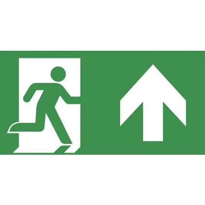 Das Piktogramm eignet sich als Rettungswegzeichen für die LED-Notbeleuchtung von Optilux. Achtung: Die Leuchte ist nicht enthalten, lediglich das Schild mit dem Pfeil nach oben.