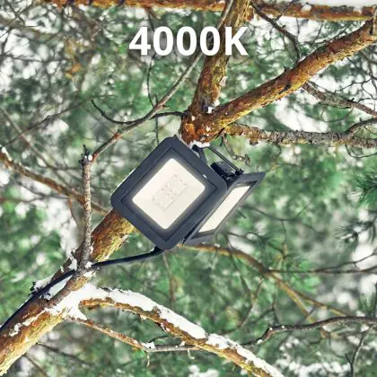 Diese LED strahlt Licht mit einer kaltweißen Farbtemperatur von 4.000 Kelvin ab. Diese Lichtfarbe ist dafür vorgesehen, eine neutrale Atmosphäre zu kreieren. Setzen Sie beispielsweise Ihren Garten oder Ihr Haus in Szene oder nutzen Sie den Fluter zur Beleuchtung von anderen Objekten, wie etwa Parks oder auch Reklametafeln.