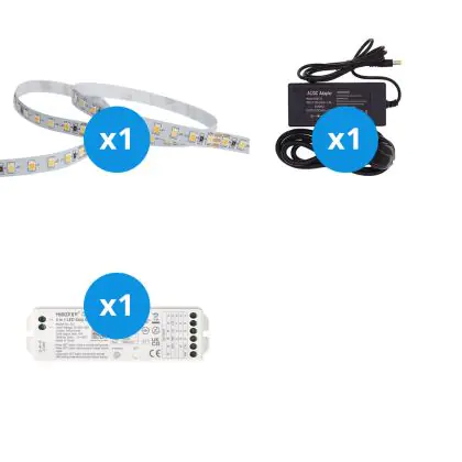 Der große Vorteil dieses Komplettsets ist, dass Sie alles Zubehör haben, das Sie benötigen, um die besten Lichtakzente für Ihr Zuhause oder Ihre Geschäftsräume zu setzen. Sie müssen nicht nach dem richtigen Zubehör suchen, sondern nur alle Elemente miteinander verbinden. Anschließend stecken Sie den Stecker in eine normale Steckdose in Ihrem Haus. Alles dazu erfahren Sie in unserem Installationsblog. Dieses Set enthält: