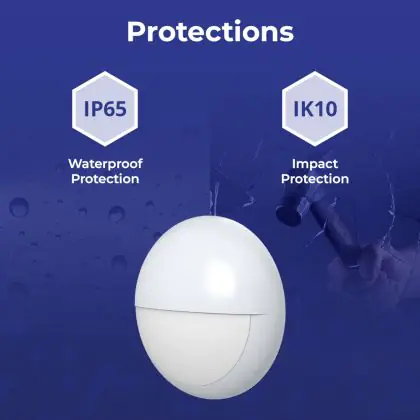 Die IK-Schutzklasse zeigt die Schlagfestigkeit einer Leuchte sowie den Schutz vor Vandalismus an. Sie wird in zwei Ziffern ausgedrückt (IK00 - IK10). Produkte mit IK00 sind somit nicht geschützt gegen Schläge oder Stöße jeglicher Art. Produkte mit IK10 bieten Schutz gegen Stöße von 20 Joule und sind gegen vandalismus-sicher.