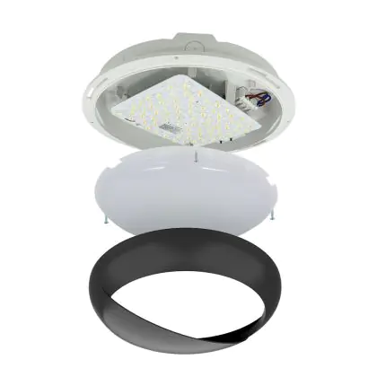 Die Noxion LED-Wand- und Deckenleuchte Pro V2 Weiß 12/16/20W 2400lm - 830-840-865 CCT | 325mm - IP65 - Not 3H + Augenlid Ring Schwarz ist eine Feuchtraumleuchte. Sie strahlt Licht in der Farbtemperatur aus und punktet durch eine lange Lebensdauer. Diese Leuchte ist speziell zur Verwendung in Feuchträumen (Keller, Waschräume, etc.) vorgesehen.