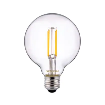 Die Noxion Lucent Fadenlampe LED E27 Globe Klar 7W 806lm - 827 Extra Warmweiß | Dimmbar - Ersatz Für 60W ist eine effiziente E27 LED-Lampe mit Retrodesign und der perfekte Ersatz für Ihre konventionellen 60W Lampen mit E27. Zudem strahlt sie Licht in der Farbtemperatur 2700K - Extra Warmweiß aus und punktet durch eine lange Lebensdauer.