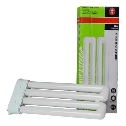 Die Osram Dulux F ist sehr kurz und kompakt und kann in vielen Anwendungen verwendet werden. Aufgrund des 2G10 Lampensockels kann sie leicht in die passenden Lampen installiert werden. Diese Kompaktleuchtstoffröhren können sowohl mit einem konventionellen als auch elektronischen Vorschaltgerät betrieben werden. Osram Dulux F 36W/827 besitzen 4 Pins und eine Länge von 21,7 cm.