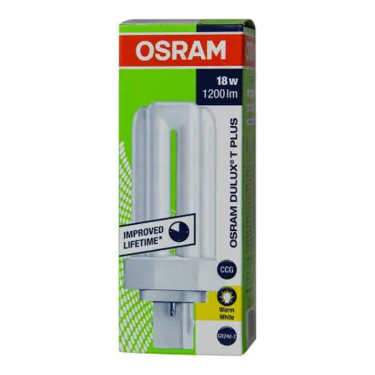 Die Osram Dulux T Plus 18W 830 überzeugt mit einer hohen Farbwiedergabestufe und mit einer warmweißen Farbtemperatur.