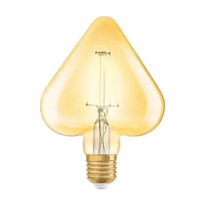 Die Osram Vintage 1906 LED E27 Heart 4.5W 825 Gold | Ersetzt 40W ermöglicht enorme Energieeinsparungen von bis zu 90 %. Dank des Standard-E27-Sockels klappt der Umstieg auf LED besonders einfach. Die Goldbeschichtung und die sichtbaren Filamentstäbe im Inneren des Leuchtkörpers machen die Vintage-LED zu einem echten Highlight. Der Leuchtkörper ist begeistert mit einer Herz-Form.