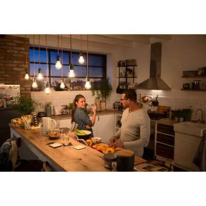 4. Dim to Warm: Durch Dimmen wird das Licht wärmer (gelber). Je stärker Sie dimmen, desto wärmer wird die Farbe.