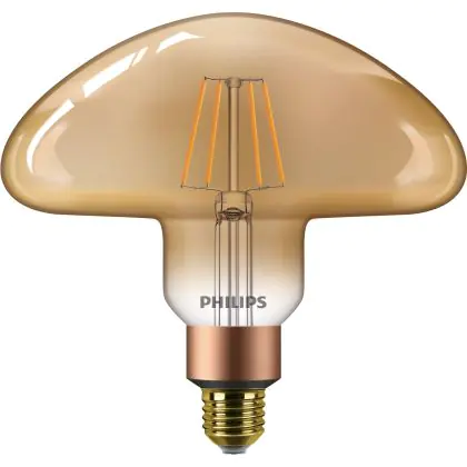 Die Philips Classic LED E27 Mushroom 200mm Fadenlampe Gold 5.5W 470lm - 818 Extra Warmweiß | Dimmbar - Ersatz für 40W ist eine effiziente E27 LED-Lampe mit Retrodesign und der perfekte Ersatz für Ihre konventionellen 40W Lampen mit E27. Zudem strahlt sie Licht in der Farbtemperatur 1800K - Extra Warmweiß aus und punktet durch eine lange Lebensdauer.