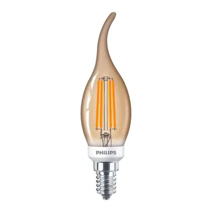 Beschreibung Philips Classic LED Kerze E14 Gebogene Spitze Fadenlampe Gold 5W 350lm - 822 Extra Warmweiß | Dimmbar - Ersatz für 40W