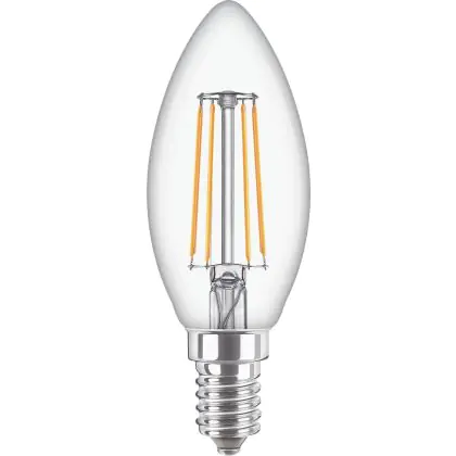 Die Philips Corepro LED Kerze E14 Fadenlampe Klar 4.3W 470lm - 827 Extra Warmweiß | Ersatz für 40W ist eine effiziente E14 LED-Lampe mit Retrodesign und der perfekte Ersatz für Ihre konventionellen 40W Lampen mit E14. Zudem strahlt sie Licht in der Farbtemperatur 2700K - Extra Warmweiß aus und punktet durch eine lange Lebensdauer.