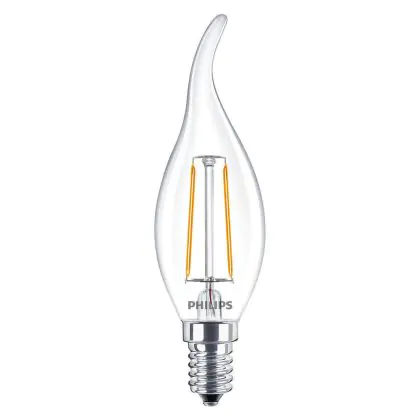 Beschreibung Philips Corepro LED Kerze E14 Gebogene Spitze Fadenlampe Klar 2W 250lm - 827 Extra Warmweiß | Ersatz für 25W
