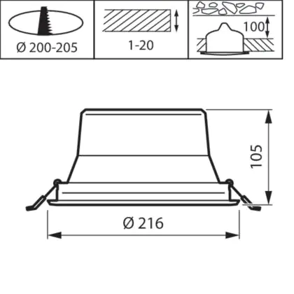 Beschreibung Philips LED Downlight Coreline DN142B Aluminium Weiß 19.2W 2300lm 60D - 830 Warmweiß | Ausschnitt 200mm - IP20 - UGR<19 - Interact Dimmbar