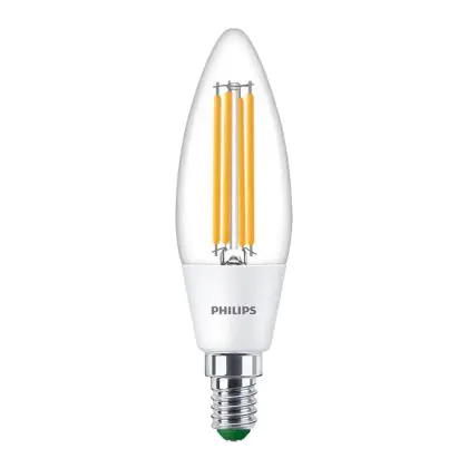 Die Philips MASTER LED Kerze Ultra Efficient E14 Kerze Klar 2.3W 485lm - 840 Kaltweiß | Ersatz für 40W ist eine effiziente E14 LED-Lampe und der perfekte Ersatz für Ihre konventionellen 40W Lampen mit E14-Sockel. Zudem strahlt sie Licht in der Farbtemperatur 4000K - Kaltweiß aus und punktet durch eine lange Lebensdauer.