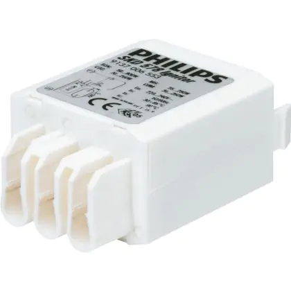 An das Philips SKD 578 220-240V 50/60Hz können Sie eine Lampe anschließen. Mit diesem Vorschaltgerät können Sie SON/ CDM/ MH/ HPI/ HPA/ CDO Lampen mit 36-600W verwenden. Das Gehäuse dieses Vorschaltgerät besteht aus Kunststoff.