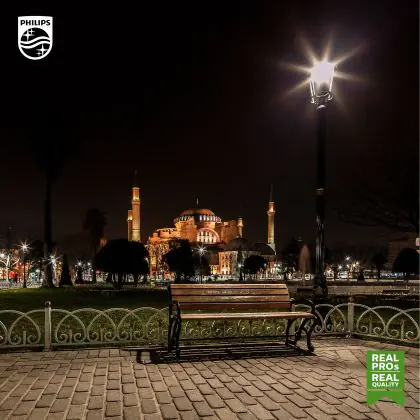 Die Philips TrueForce LED HPL E27 42W 830 Clear strahlt als Außenbeleuchtung mit 360° Abstrahlwinkel ein warmweißes Licht aus. Die Lichtfarbe hat 3.000 Kelvin und damit einen erhöhten Rotanteil. Das schafft eine angenehme und einladende Atmosphäre.