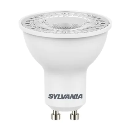 Die Sylvania RefLED ist eine moderne und effiziente LED-Lampe. Sie besitzt einen GU10-Sockel und dient als Ersatz für herkömmliche Leuchtmittel mit einem Verbrauch von 60 W. Damit ermöglicht sie Energieeinsparungen von 90%. Sie zeichnet sich zudem durch eine lange Lebensdauer und die Farbtemperatur kaltweiß (4.000 K) aus.