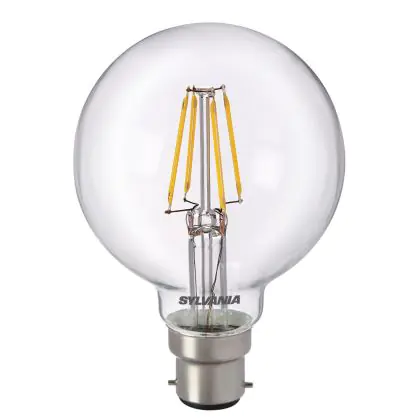 Beschreibung Sylvania Retro ToLEDo B22 Globe 80mm Fadenlampe Klar 5W 640lm - 827 Extra Warmweiß | Ersatz für 60W