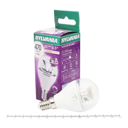 Die Sylvania ToLEDo Ball E14 Klar zeichnet sich durch einen geringen Stromverbrauch von nur 6,5 Watt aus. Dies ermöglicht Ihnen erhebliche Energieeinsparungen. Die LED hat einen E14-Sockel, sowie eine P45-Ballform, und spendet warmes Licht mit einer Farbtemperatur von 2.700 Kelvin.